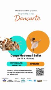Estão abertas as inscrições para aulas gratuitas de Ballet e Dança Contemporânea em Camaçari e Simões Filho